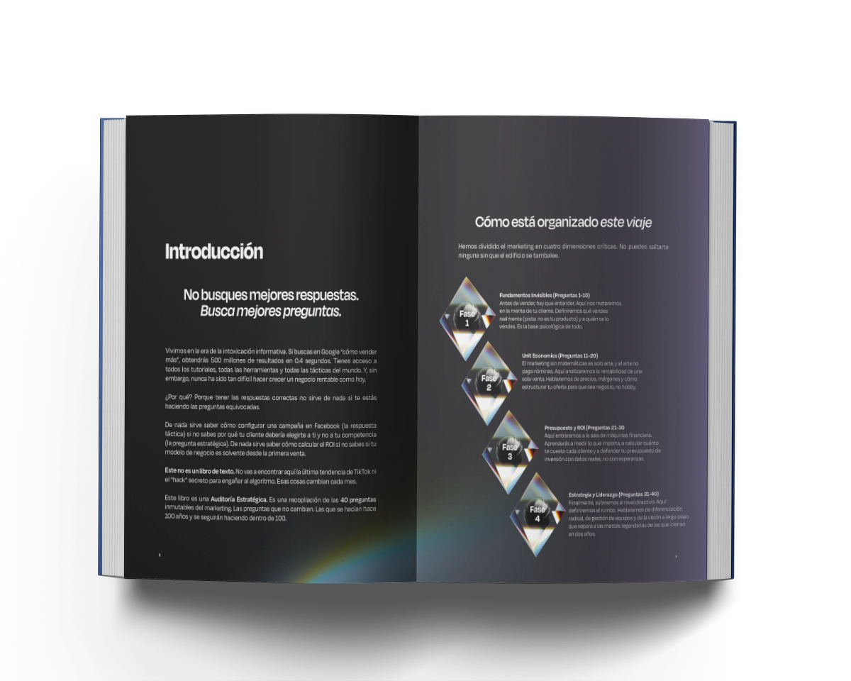 Diferencial: Divide el marketing en 4 dimensiones críticas y lo vuelve ejecutable